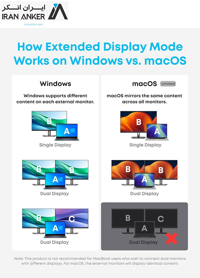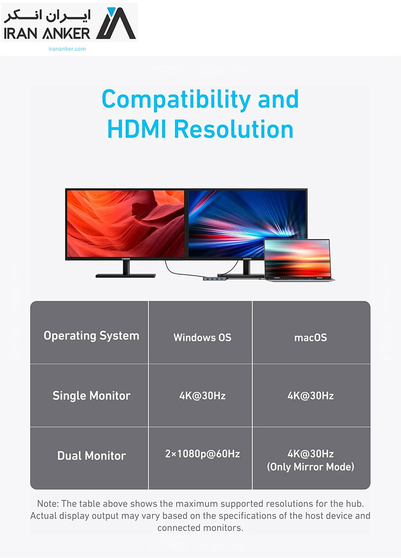 ❗ اگر بخواهید هر دو خروجی HDMI با کیفیت 4K واقعی داشته باشید ممکن است در تنظیمات خاص محدودیت وجود داشته باشد (مثلاً یکی با 4K@30Hz و دیگری با رزولوشن کمتر).