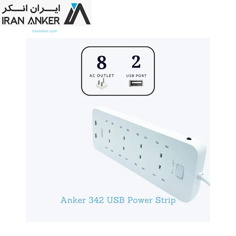 چند راهی برق ۲ متری انکر Anker 342 USB Power Strip 10 in 1 – مدل A9182