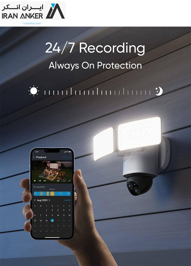 ضبط 24/7 برای آرامش خاطر: همیشه روشن و همیشه ضبط می‌کند وقتی حافظه محلی فعال شده است با نصب کارت microSD (تا 128 گیگابایت) یا اتصال به eufy HomeBase S380. فعالیت ها و افراد را می توان همیشه تحت نظر داشت.