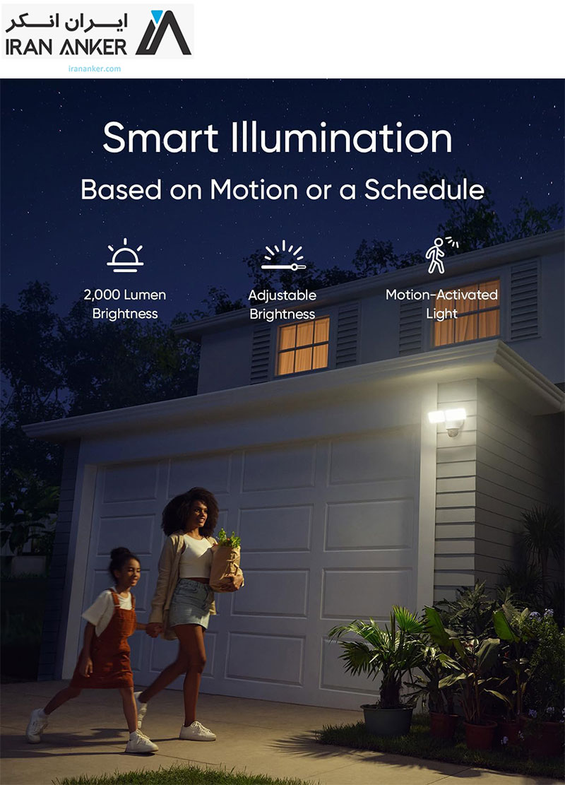 چراغ هوشمند 2000 لومن: دارای روشنایی قابل تنظیم، زنگ هشدار 95 دسی بل برای افزایش امنیت، روشنایی فعال با حرکت و روشنایی محیط است. علاوه بر این، دوربین شما هم به عنوان منبع نور و هم به عنوان یک نگهبان امنیتی هوشیار عمل می کند.