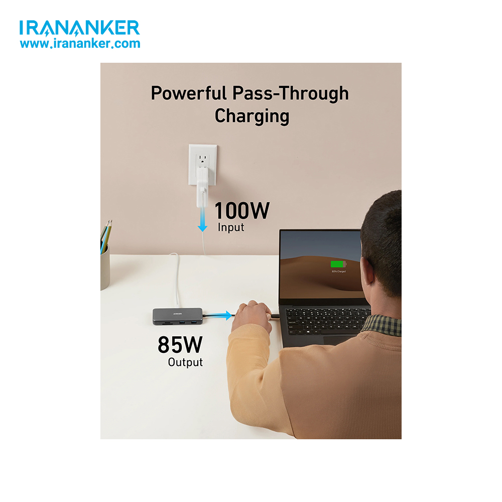 شارژ قدرتمند عبوری: سازگار با USB-C Power Delivery برای ارائه شارژ عبوری با سرعت بالا تا 85 وات.