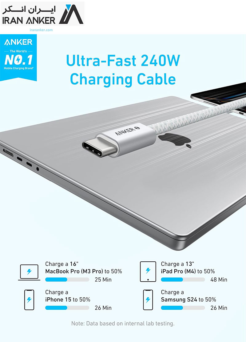 شارژ 240 واتی با سرعت کامل: مک بوک پرو 16 اینچی (M3) را تنها در 25 دقیقه تا 50 درصد و آیپد پرو 13 اینچی (M4) را در 48 دقیقه شارژ می کند، مناسب برای طیف وسیعی از دستگاه های قدرتمند.