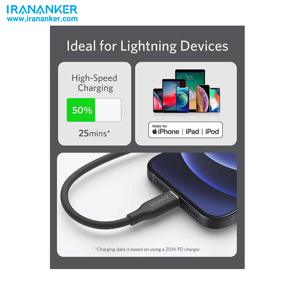 کار بی‌عیب و نقص با همه دستگاه‌های برقی (لایتنینگ) شما، ازجمله آیفون ۱۲ و آیپد را  تضمین کرده است.