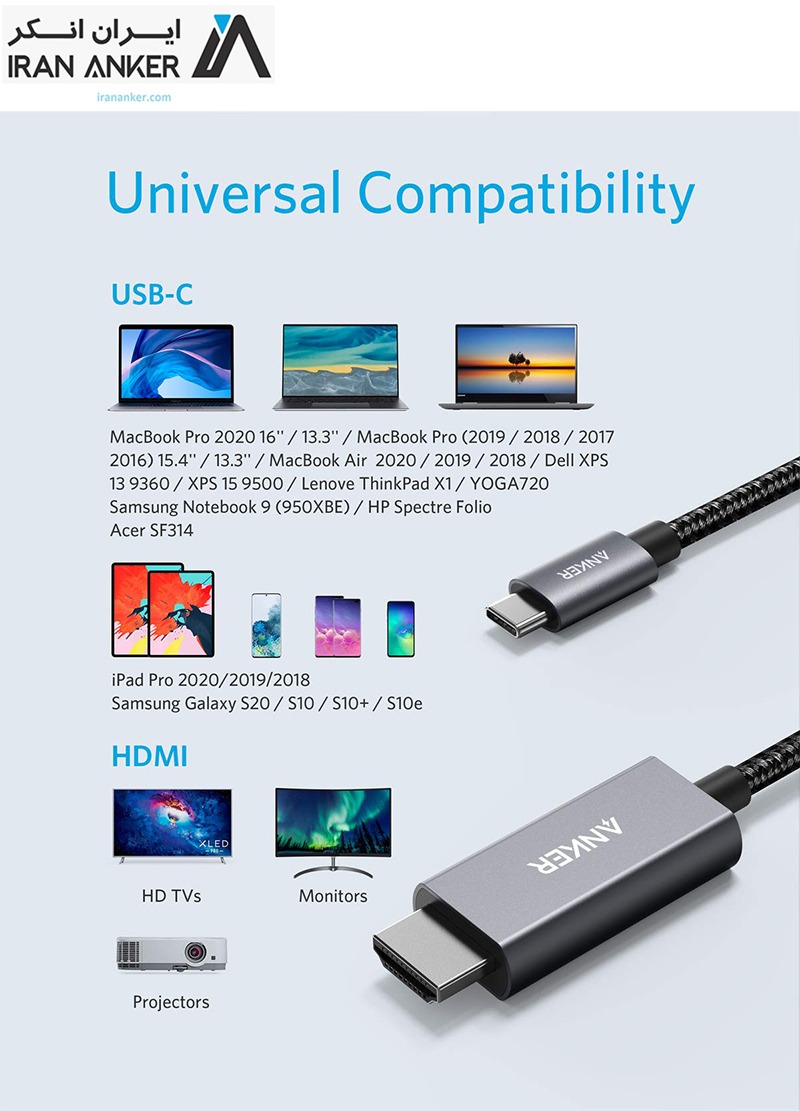 USB-C به HDMI: کانکتور USB-C سازگاری کامل را با جدیدترین رایانه ها و دستگاه ها فراهم می کند – حتی با Thunderbolt 3 سازگار است. در همین حال، کانکتور HDMI از وضوح تا 4K پشتیبانی می کند و نمایشگرهای چند مانیتور را راحت می کند.