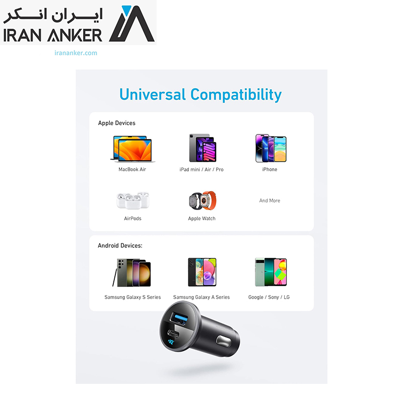 سازگاری گسترده: از آیفون گرفته تا سامسونگ تا تبلتهای USB-C و موارد دیگر، فناوری امضای Anker PowerIQ 3.0 سازگاری بینقصی را با تقریباً هر دستگاه تلفن همراه ارائه میدهد.