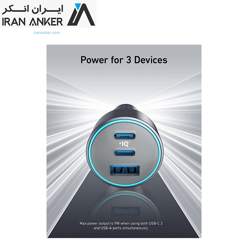 شارژ همزمان: با استفاده از دو درگاه USB-C و یک پورت USB-A، حداکثر سه دستگاه را به طور همزمان با توان خروجی 67 وات شارژ کنید. هنگامی که هر سه دستگاه متصل هستند، پورت USB-C 1 45 وات برق را از طریق شارژ PPS / PD ارائه می دهد.