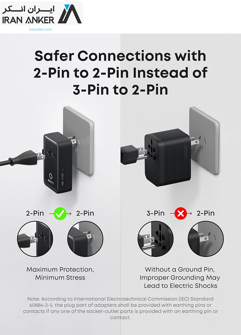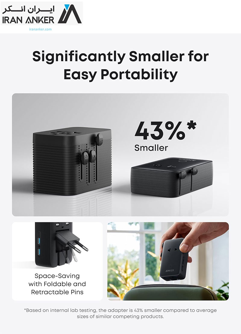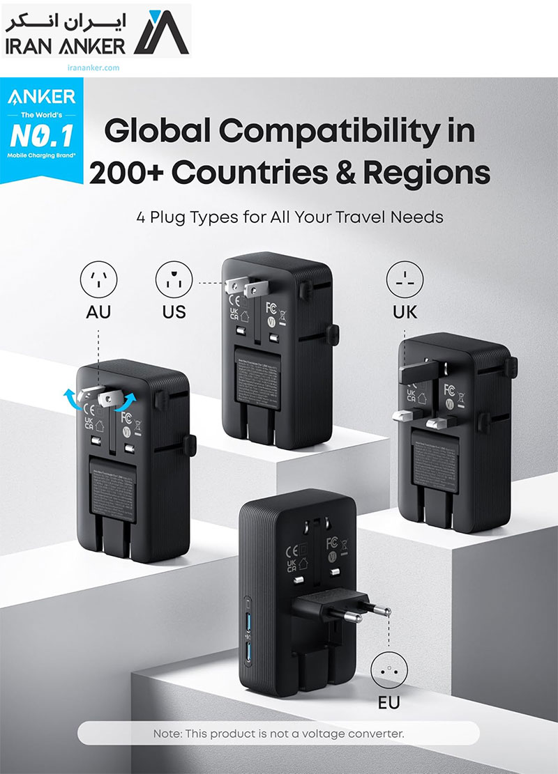 شارژر مسافرتی انکر Anker Nano Travel Adapter 5‑in‑1 مدل A9215